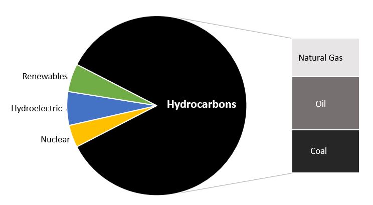 Let’s start with the current energy mix. Right now (based on 2019 consumption) 84% of the world’s energy comes from fossil fuels. That includes almost 30% coal. Nuclear, hydroelectric and renewables make up the remaining, with renewables (including biomass, solar, geothermal, wind, to name a few) providing about 5% of consumed energy. The renewables slice is not very big, and it is not evenly distributed throughout the world.